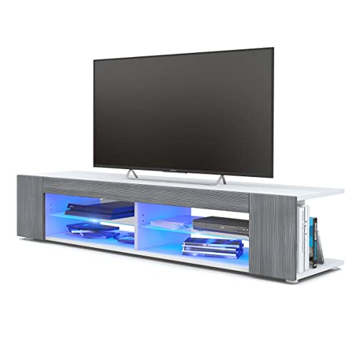 SIRHONA Meuble TV LED Bleu Blanc, Éclairage LED 16 Couleurs...