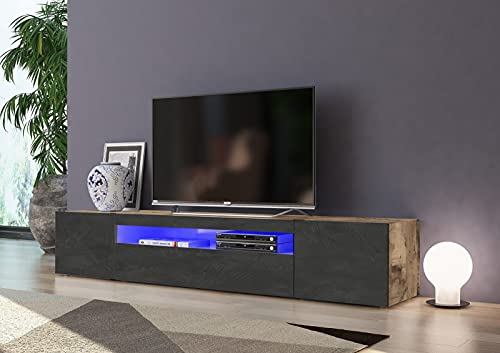 TV Meuble Dmora Italy 200x40h37 érable ardoise LED bleu