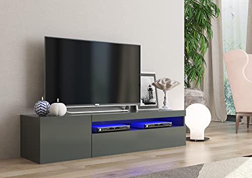 Stella Meuble TV Bleu avec Éclairage LED, Rangement Nombreux
