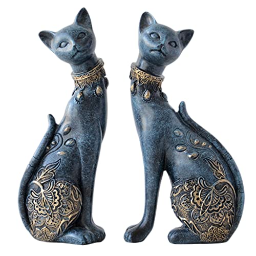 Lot de 2 Figurines de Chat Bleu, décoration d''intérieur Cou...