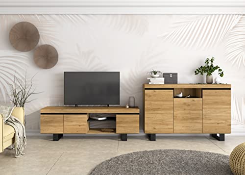 Sweiko Meuble TV, buffet, avec design naturel et noir, meubl...