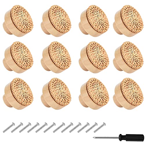 RUNEAY Lot de 12 boutons de meubles en rotin - 40 mm - Avec...