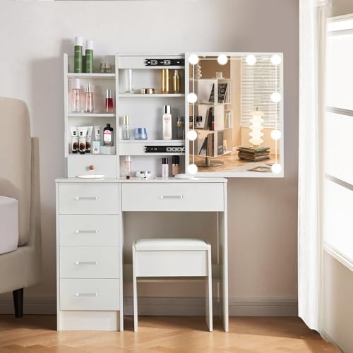 Buildonely Coiffeuse avec tabouret et miroir, coiffeuse avec...