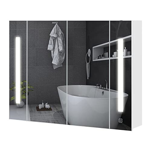 Armoire de rangement murale lumineuse avec miroir et 3 lumiè...