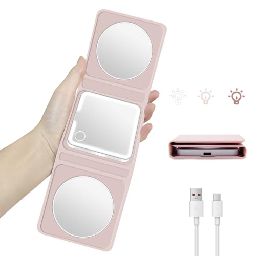 Amlope LED Miroir de Poche Lumineux 1X/5X/10X Miroir Grossis...