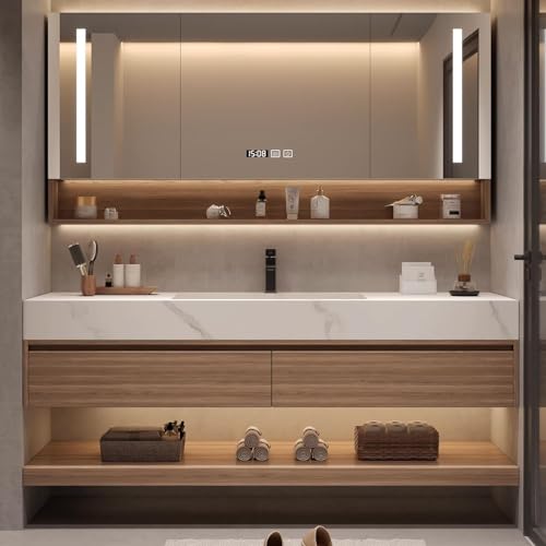 Ensemble lavabo muré flottant évier intégré miroir intellige...