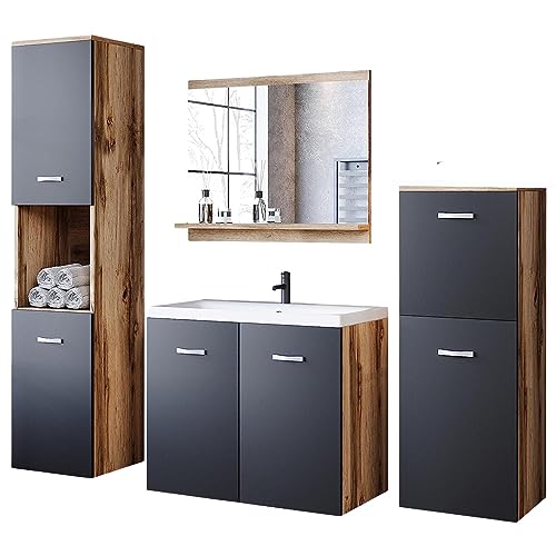 Doporro Meuble Salle de Bains Gris Noir Mat Ensemble Suspend...