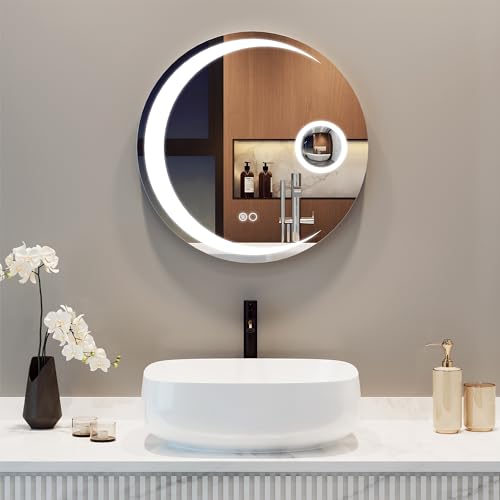 Miroir de Salle de Bain Rond 500 mm, Lumières Quart de Lune,...