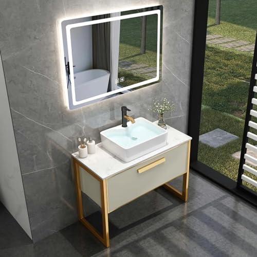 Vanité de salle de bain luxe avec évier intégré et miroir de...