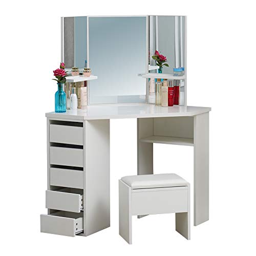 Ocasa Blanc Coiffeuse 3 Miroirs Table de Maquillage 5 Tiroir...