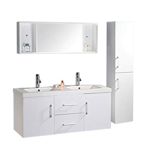 Aurlane Salle de Bain Suspendu 2 Tiroirs Blancs avec Vasque...