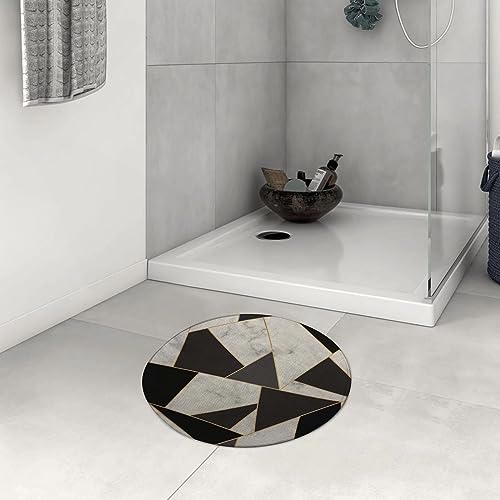 Tapis de sol géométrique noir mosaïque marbre blanc style lu...