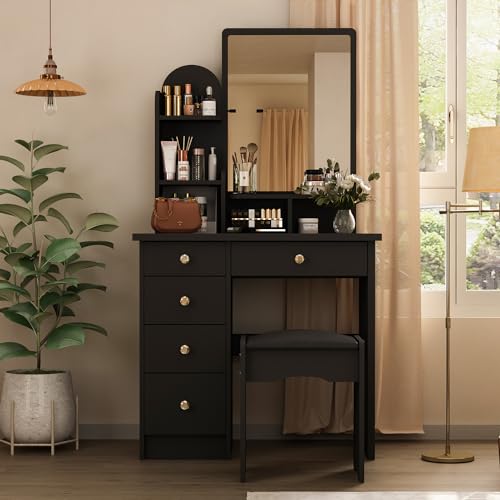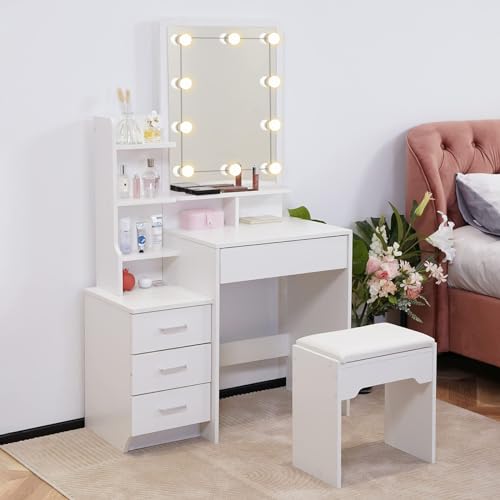 Lvifur Coiffeuse avec Miroir et Tabouret, Coiffeuse avec Mir...