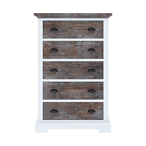 Commode blanc indien en bois massif 5 tiroirs 80 cm