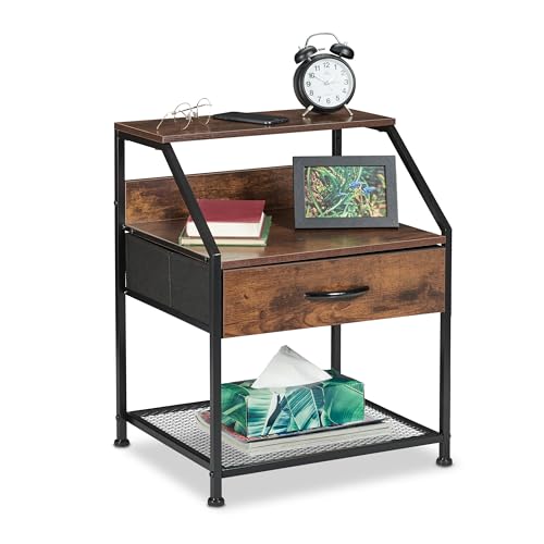 Relaxdays Table de Chevet Industriel, 3 étagères, tiroir, No...