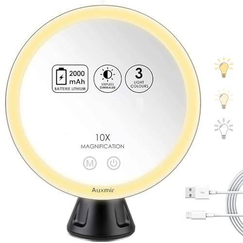 Auxmir Miroir Maquillage Grossissant 10x Lumineux, Rotation...