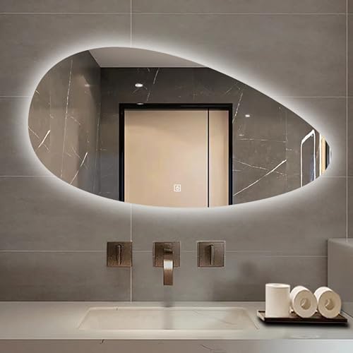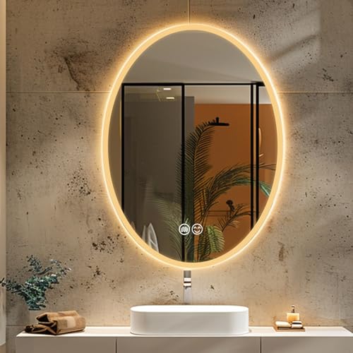 Miroir LED Ovale Miroir de Salle de Bains 50 cm Lumière Chau...
