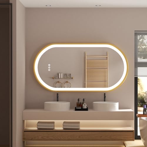 Miroir ovale lumineux LED 3 couleurs, rétro-éclairé, Grand m...