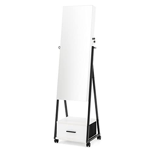 GOPLUS Armoire à Bijoux 2 en 1 avec Miroir Pleine Longueur,...