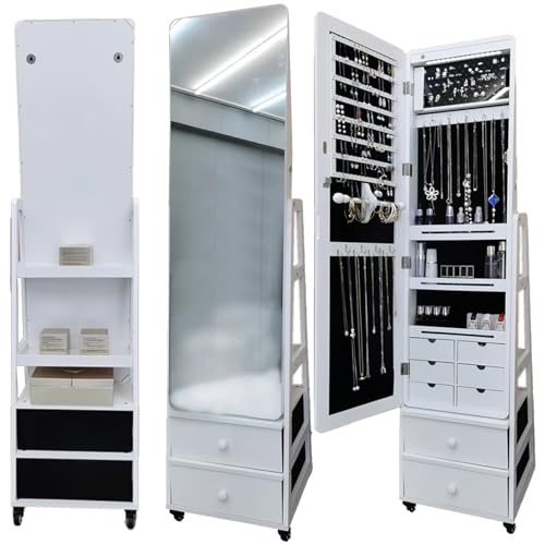 GOPLUS Armoire Bijoux LED, Réglable Hauteur/Angle, Miroir In...