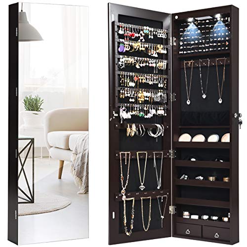 GOPLUS Armoire Bijoux LED, Miroir Plein 2Tiroirs