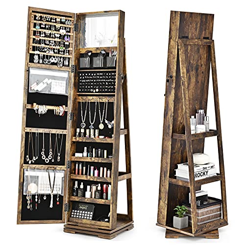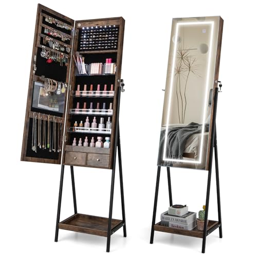 Goplus Armoire Bijoux 2 en 1 Miroir Pleine Longueur Organisa...