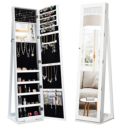 GOPLUS Armoire Bijoux avec Miroir Plein Longueur, Porte Bijo...