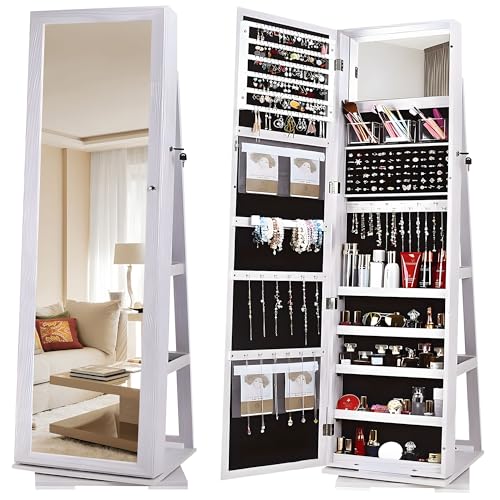 Armoire Bijoux Pleine Longueur avec Miroir Rotatif Blanc et...