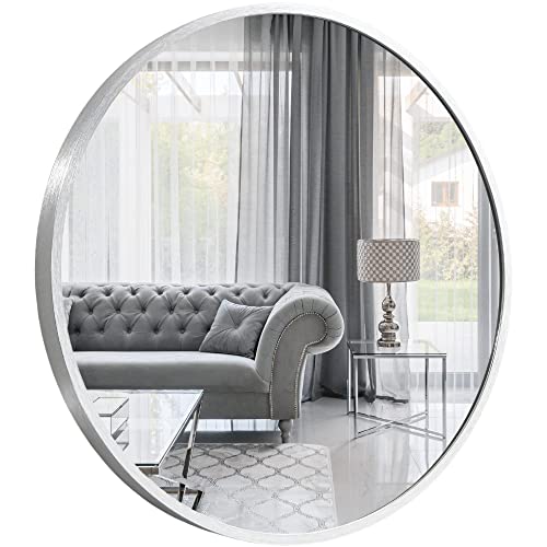 Miroir rond mural salon argent HD