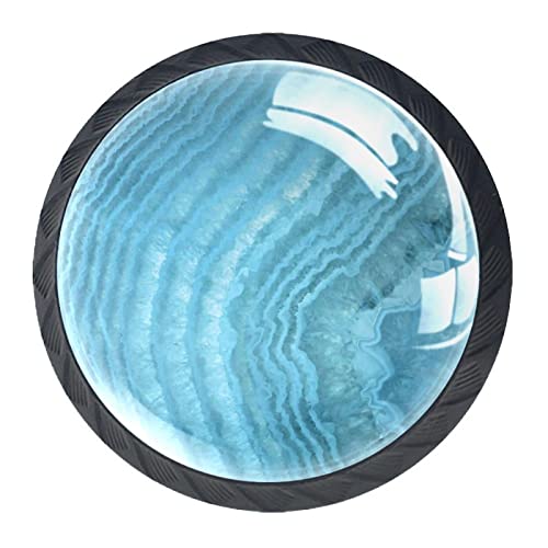 Placard quartz bleu clair, boutons ronds, poignées de tiroir