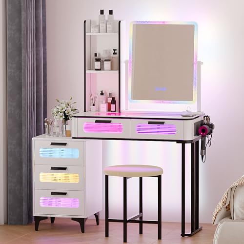 Figbird Coiffeuse avec Miroir LED, Coiffeuse avec Miroir et...