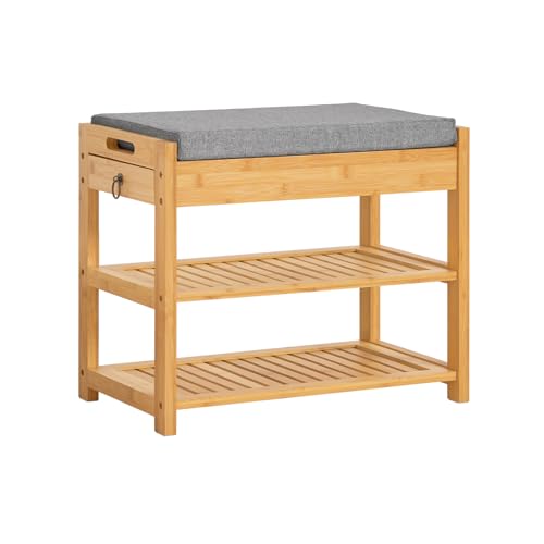 Banc rangement chaussures meuble bois 2 étagères tiroir 3 co...