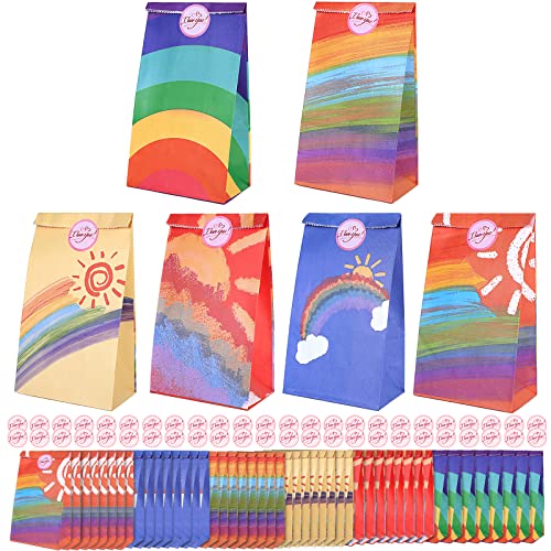 Romon Sac 12 PCS Pochette Arc Ciel Kraft Autocollants