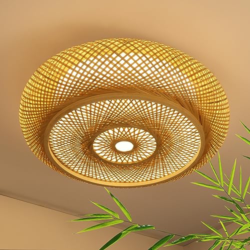 Plafonnier Bambou Plafonnier Rotin LED Dimmable Avec Télécom...