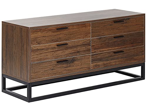 Commode Basse Noire Bois Foncé 6 Tiroirs Rangement
