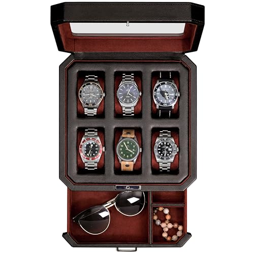 ROTHWELL Boîte à montres en cuir synthétique avec couvercle...