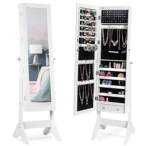 Armoire à bijoux LED avec étagères, boucles et crochets