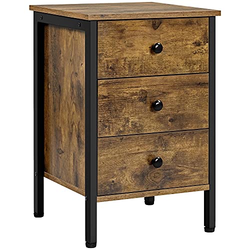 Table de chevet industrielle en bois, 3 tiroirs, métal, 40x4...