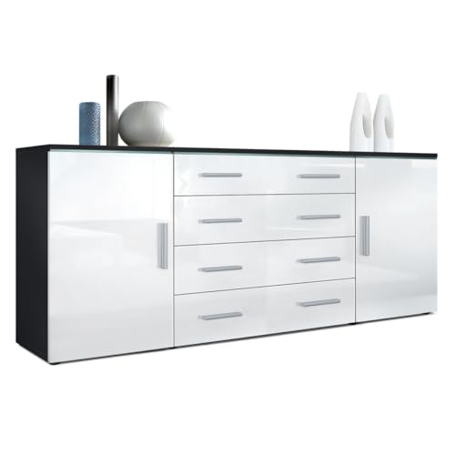 Buffet Faro V2, Commode Blanc Mat/Noir