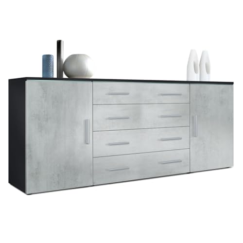 Vladon Faro Noir, Commode 2 portes x 4 tiroirs