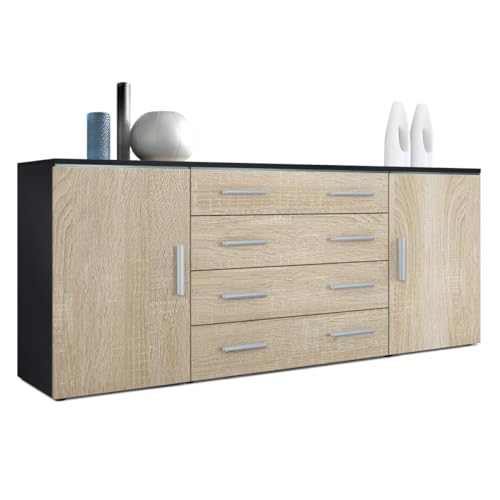 Vladon Buffet Faro V2, Commode avec 2 Portes et 4 tiroirs, B...