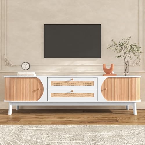 Meuble TV, Meuble TV en Rotin avec Portes Et Tiroirs, Portes...