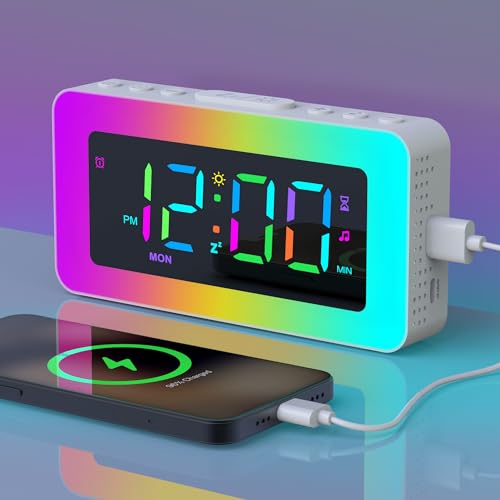 Réveil Numérique avec Affichage de Police Colorée, Miroir Ho...