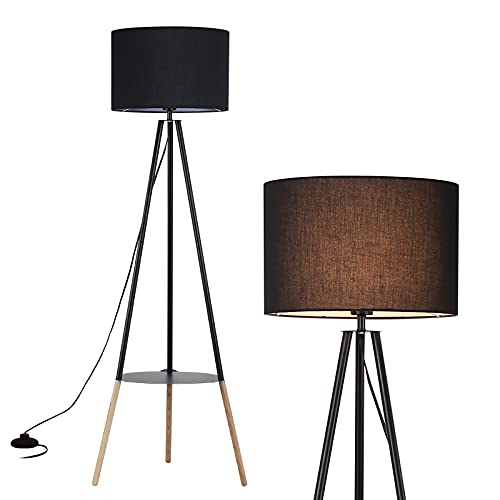 Lampadaire Abat-jour Vintage Noir Pieds Bois Bohème Industri...