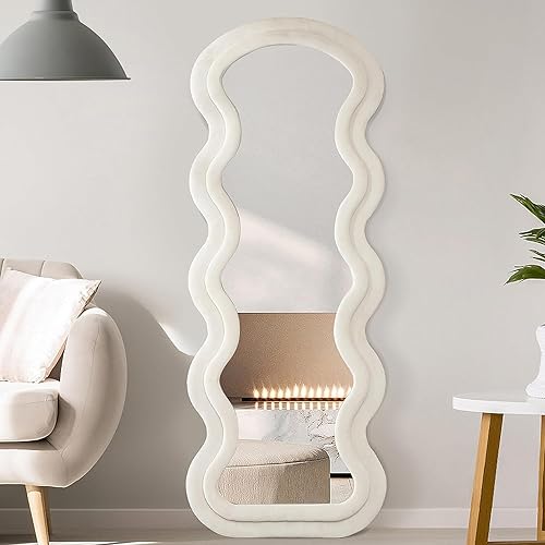 Miroir de sol sur pied avec grand design ondulé – Miroir irr...