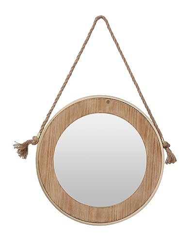 Miroir rond décoratif en bois marron, 61cm, mur.