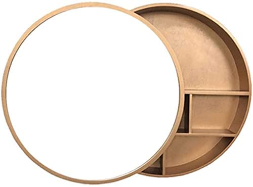 Armoire de miroir rond bois massif rangement mural chambre à...