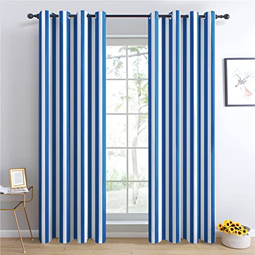 Rideau Rayures Bleu et Blanc Isolant Anti Froid 140x260 cm