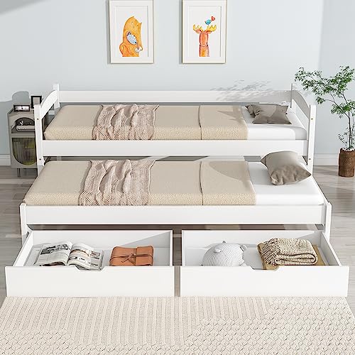 Happy Garden Lits superposés Blanc avec tiroirs Ambre, pour...