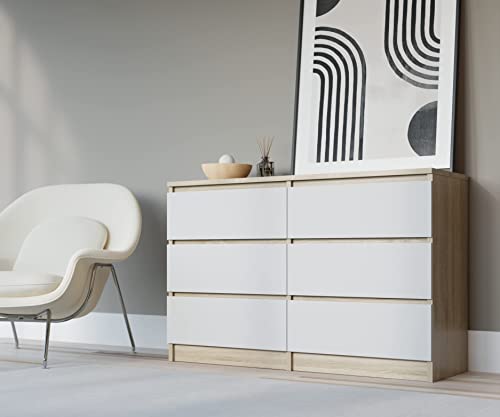 Commode 3xEliving, Buffet Demi 6 120cm - avec 6 tiroirs en c...